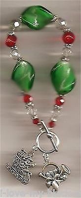 Jewelry--Christmas BRACELET #001 Lampwork Glass Bead Stretch Charm Bracelet Toggle Clasp