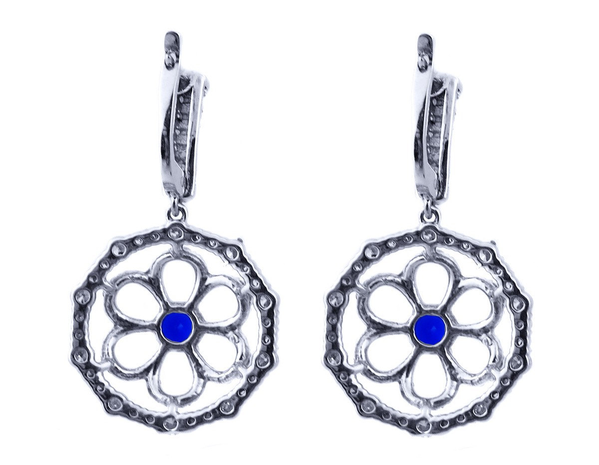 14k Diamond and Sapphire Dangling Flower Earrings September Birthstone 1.50 ct