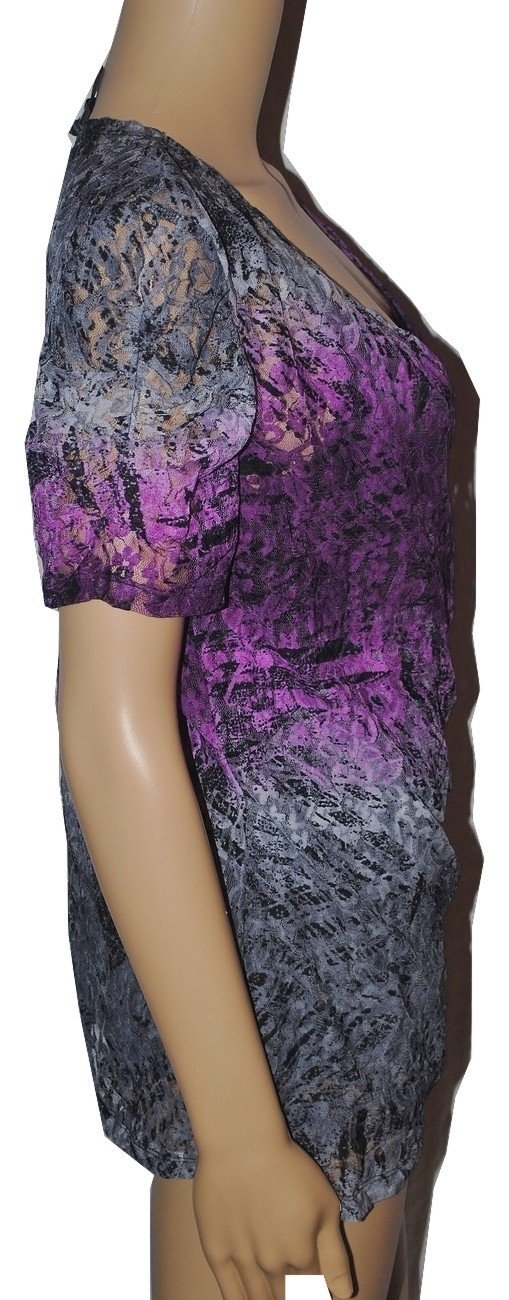 AGB Women's Lined Lace S/s Shirt Purple Gray Multi Medium
