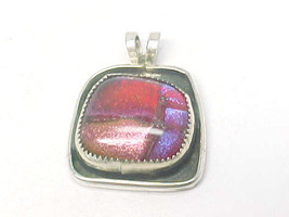 Pretty STERLING Silver Artisan made FOIL GLASS ART Cabochon Pendant in Sterling Silver. As is common with many artisan created pieces, this pendant is unmarked but tested for its Sterling content. Measures 1 1/8 inch long and 7/8 inch across. Very COLORFUL!!! ..... Also enjoy FREE SHIPPING with delivery confirmation (tracking number). ..... Please contact seller before ordering from Canada. ..... Thank you for shopping at quadrina!!!