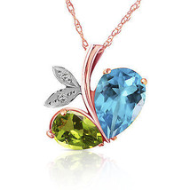 Genuine Topaz Peridot Gemstone Diamond 14K Solid Gold Necklace Pendant 5.20 CTW