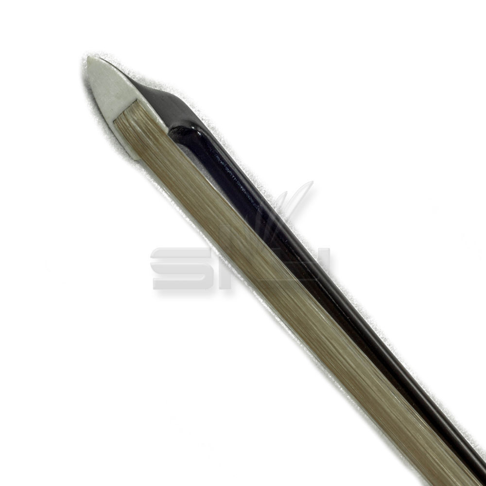 Brand new high quality carbon black fiber Violin bow with abalone inlays. Hand carved with high gloss finish, round stick, double pearl eye, genuine unbleached Mongolian horsehair. Fully lined, silver wrap and leather bow grip. Lightweight and easy to carry, very strong and stable. Good stiffness, good control and response. Bright sound and soft on fingers.