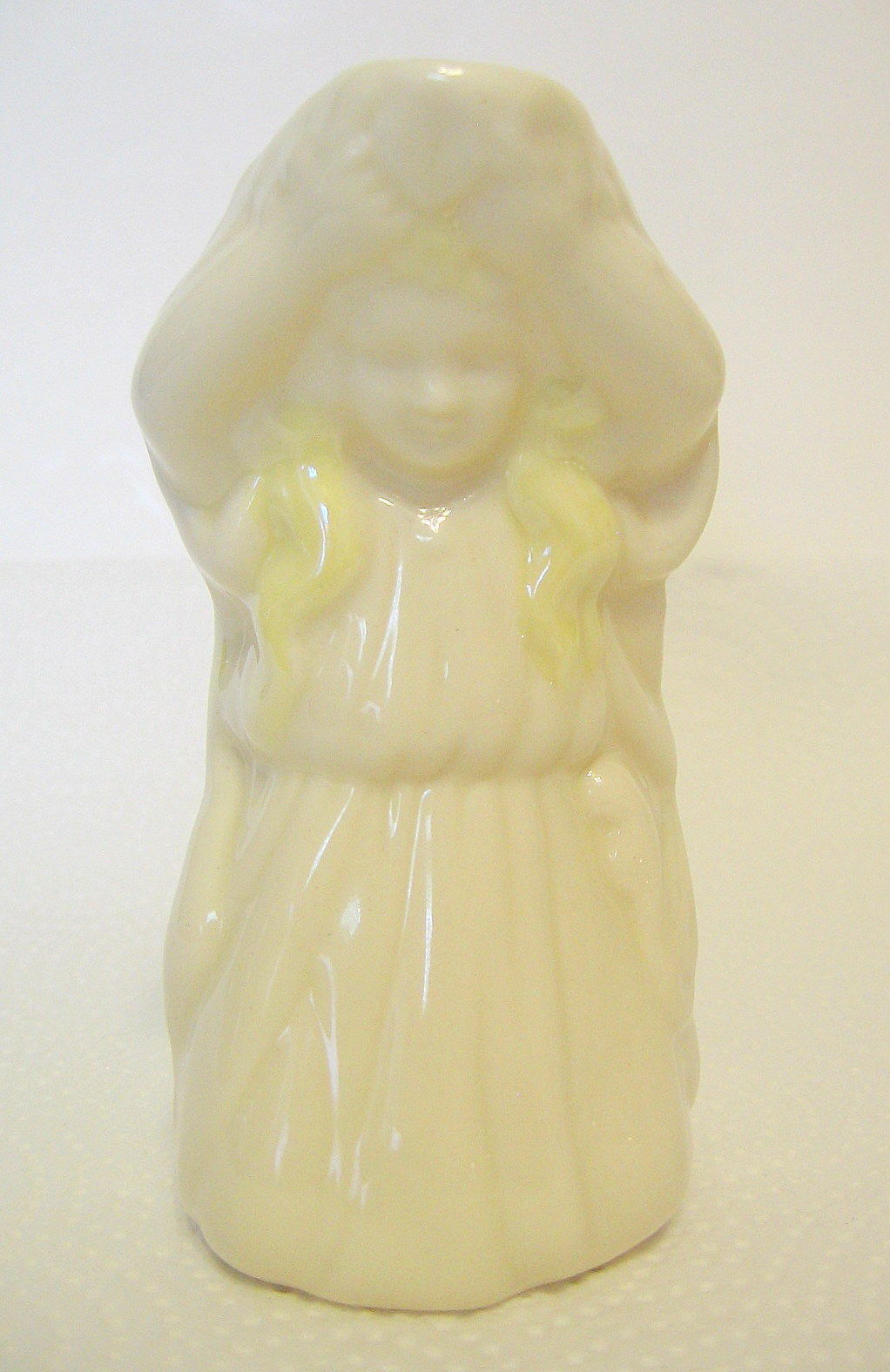 This Belleek Milkmaid Pitcher is delicately made from Irish Porcelain. The color is a gentle cream with soft pastel yellow accents. The body of the pitcher displays a Milkmaid design with a luster finish. This item would make a fine addition to your Belleek collection or a starter piece for a new collection.