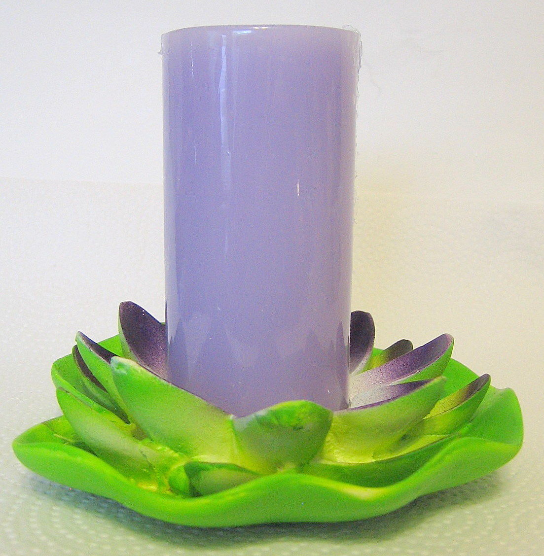 Waterlilly Candle and Holder 2 Piece Set Item 39247 AS IS