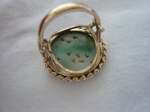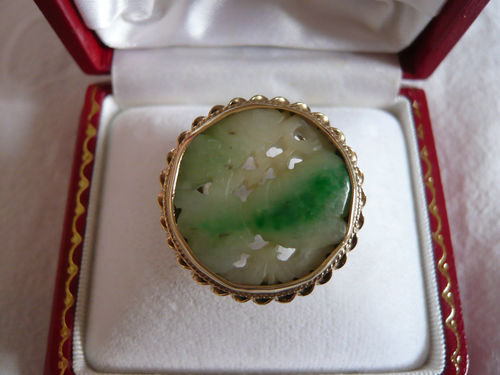 9 Carat Gold Chinese Carved Jade Ring
