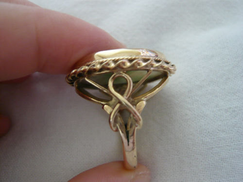 9 carat hallmarked gold chinese carved jade ring. The ring size is 5.5 and the dimensions are inch across. This is a beautiful ring with a great shank as pictured. A unique ring. THE BOX IS NOT INCLUDED.