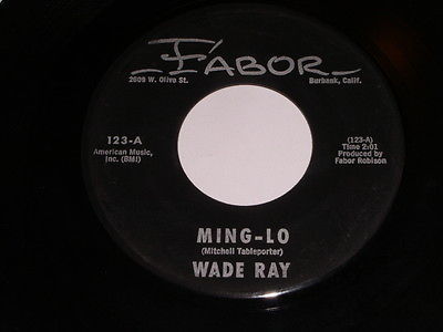 This is a vintage 45 rpm phonograph record by Wade Ray, entitled, "Ming-Lo". Flipside: "Nathan Hale". Record label: Fabor 123.