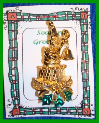 Christmas PIN #0036 Signed GOLD CROWN Bell & and similar items