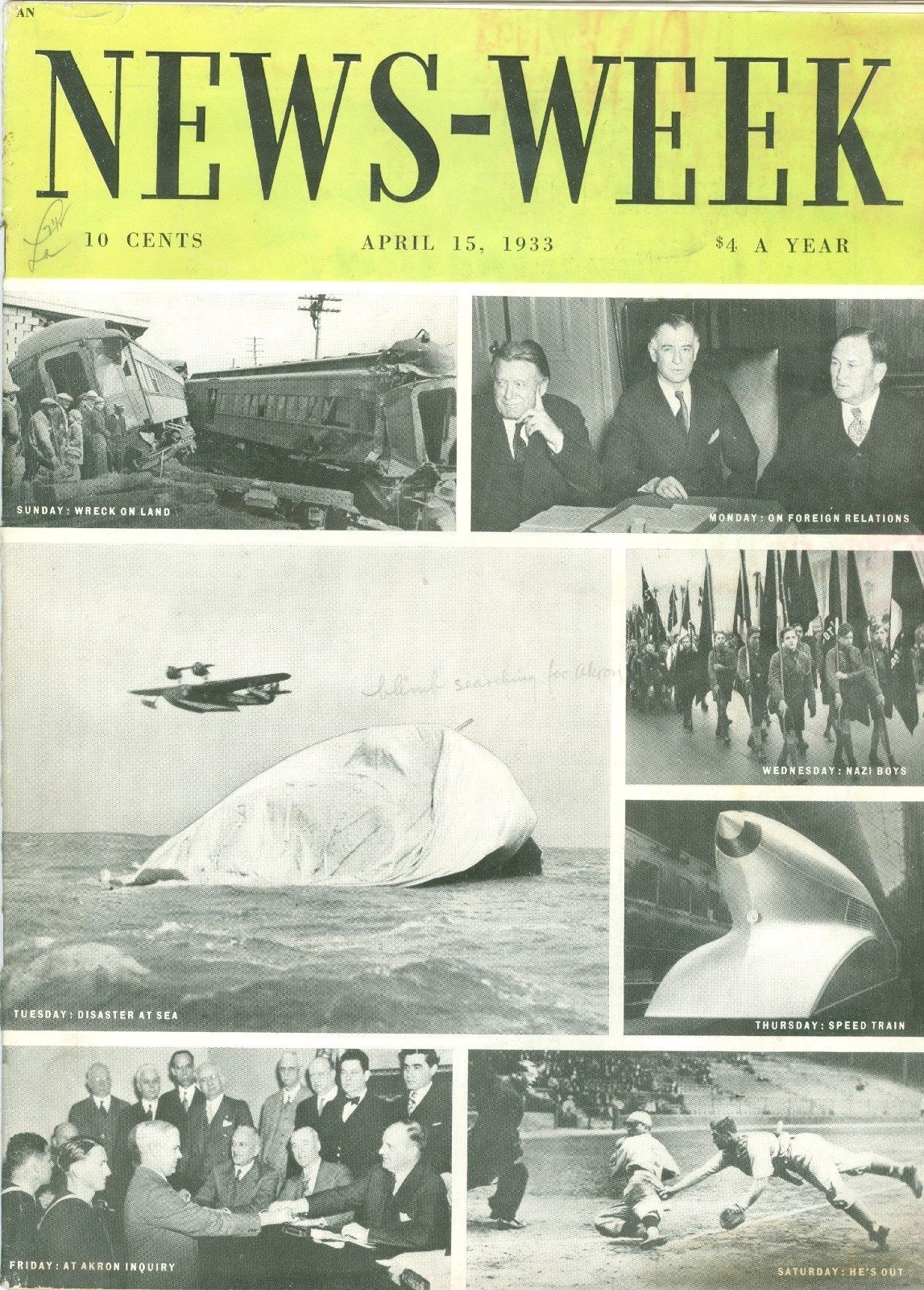 You are Bidding on a Newsweek Sea wreck war chile japan roosevelt April 15 1933 Complete