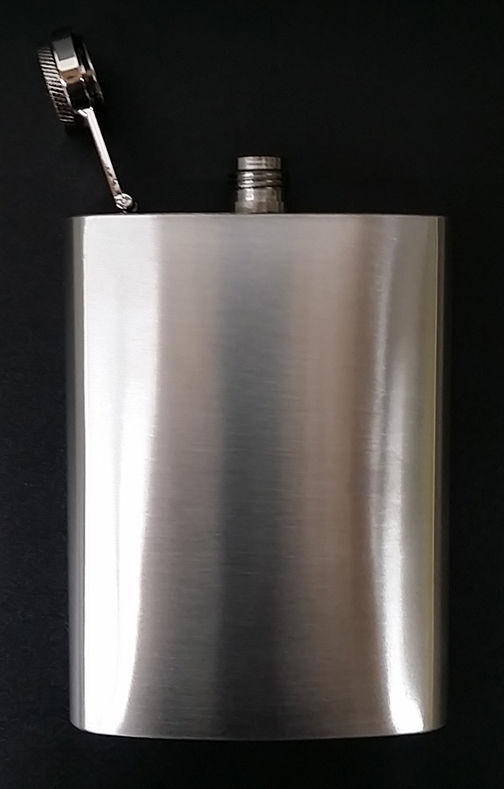 Classic design. 8 fluid oz stainless steel hip flask with hinged lid.