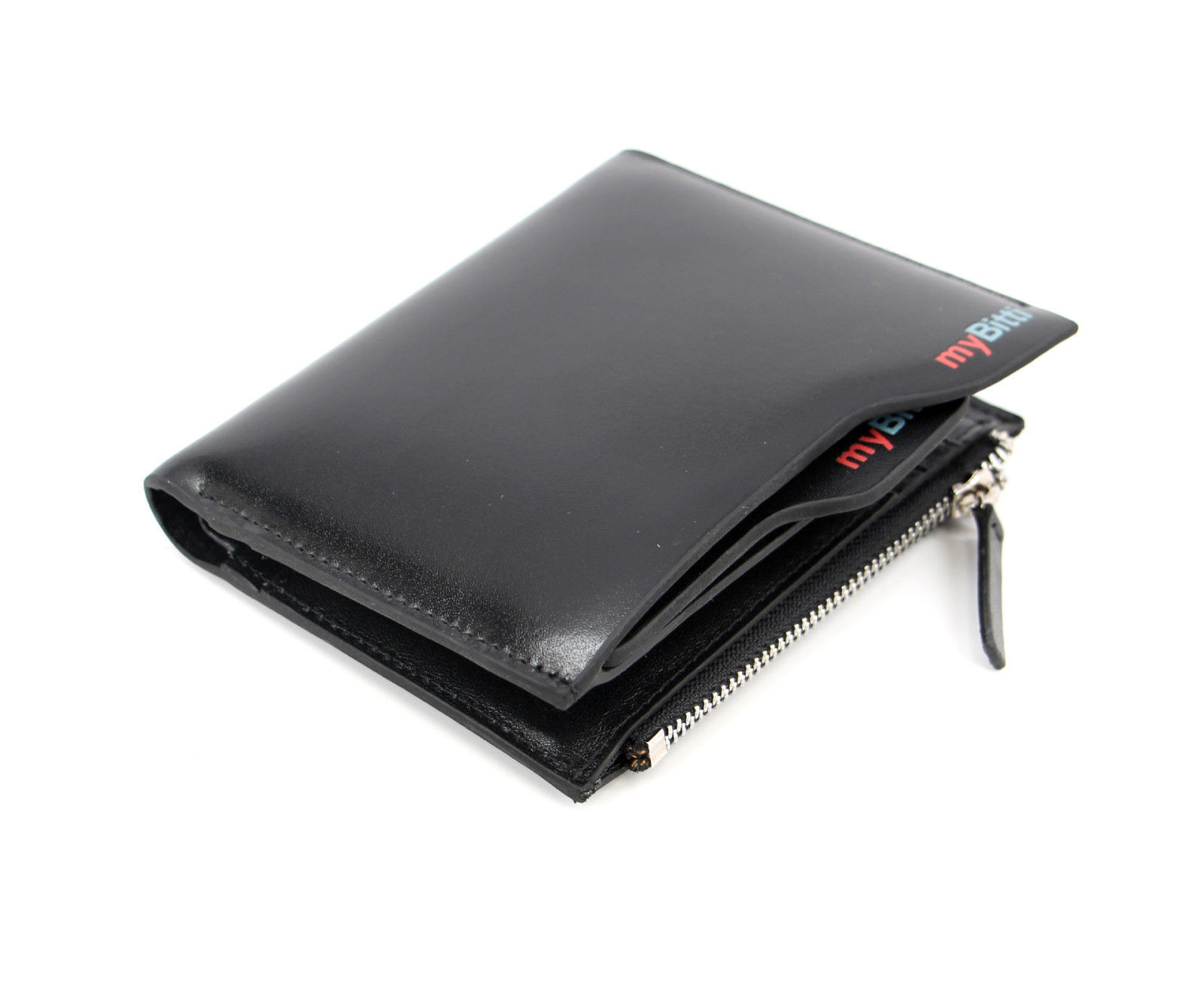 Leather wallet with six card slots, two bill pocket, and a slide-out ID window