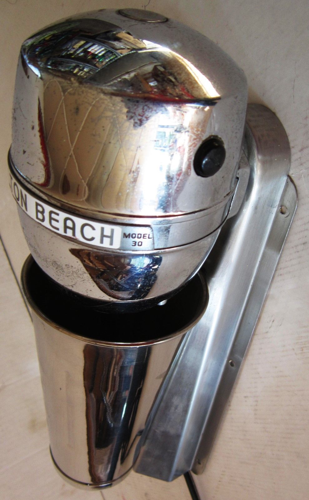 A Hamilton Beach stainless steel wall mounted blender model #30, circa