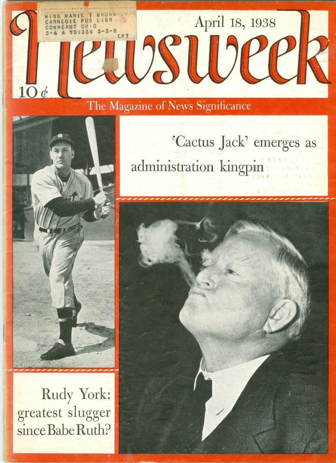 NEWSWEEK RUDY YORK BABE RUTH SPAIN JAPAN ROOSEVELT APRIL 18 1938