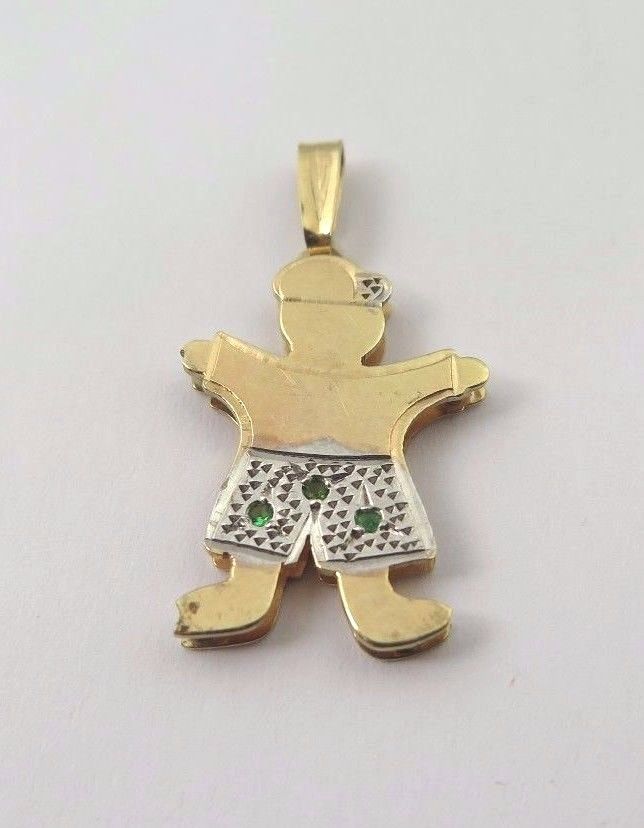 Here we have a beautiful 14k Two Tone Gold Double Plated Baby Boy Charm With Emerald May Birthstones. Great charm for engraving a name, initial or a date. Free engraving. Weight: 2.8g. Length: 1.25 inch. (including bail). Width: 0.60" inch. Thickness: 2.5mm. The perfect gift for your loved one. Comes with a free gift box. Buy with confidence, we only sell top quality items. Thanks for looking and have a great day.