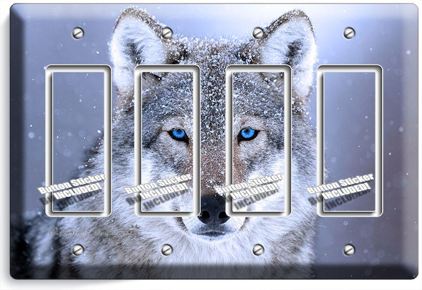 WILD GRAY BLUE EYE WOLF SNOW QUADRO GFI LIGHT SWITCH WALL PLATE COVER HOME DECOR