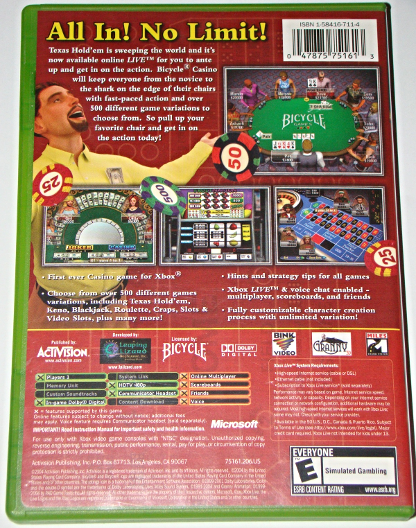 Item: XBOX - ONLY ON XBOX - BICYCLE CASINO Includes: TEXAS HOLD'EM (Complete with Instructions)