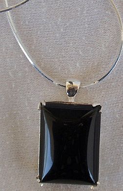 The pendant is made of onyx stone silver framed and 925 sterling silver.