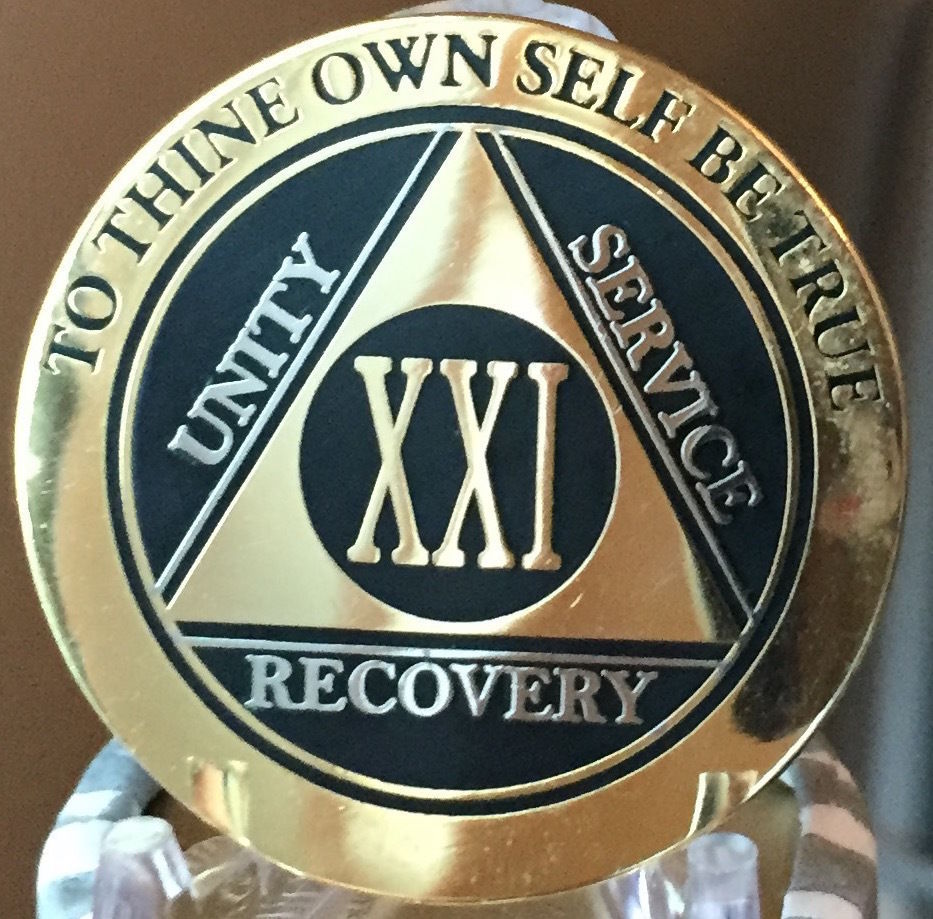 21 Year AA Medallion Black Gold Plated Bi-Plate Alcoholics Anonymous Chip Coin