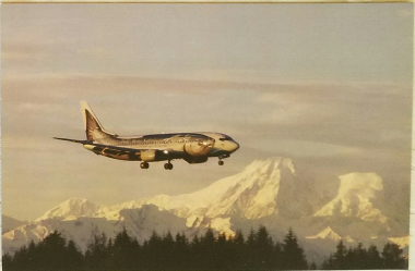 Pictured on approach to Yakutat, AK with Mt. Hubbard (14,950 ft.) in background. Pictured by Alaska Airlines employee Charlie Russell.