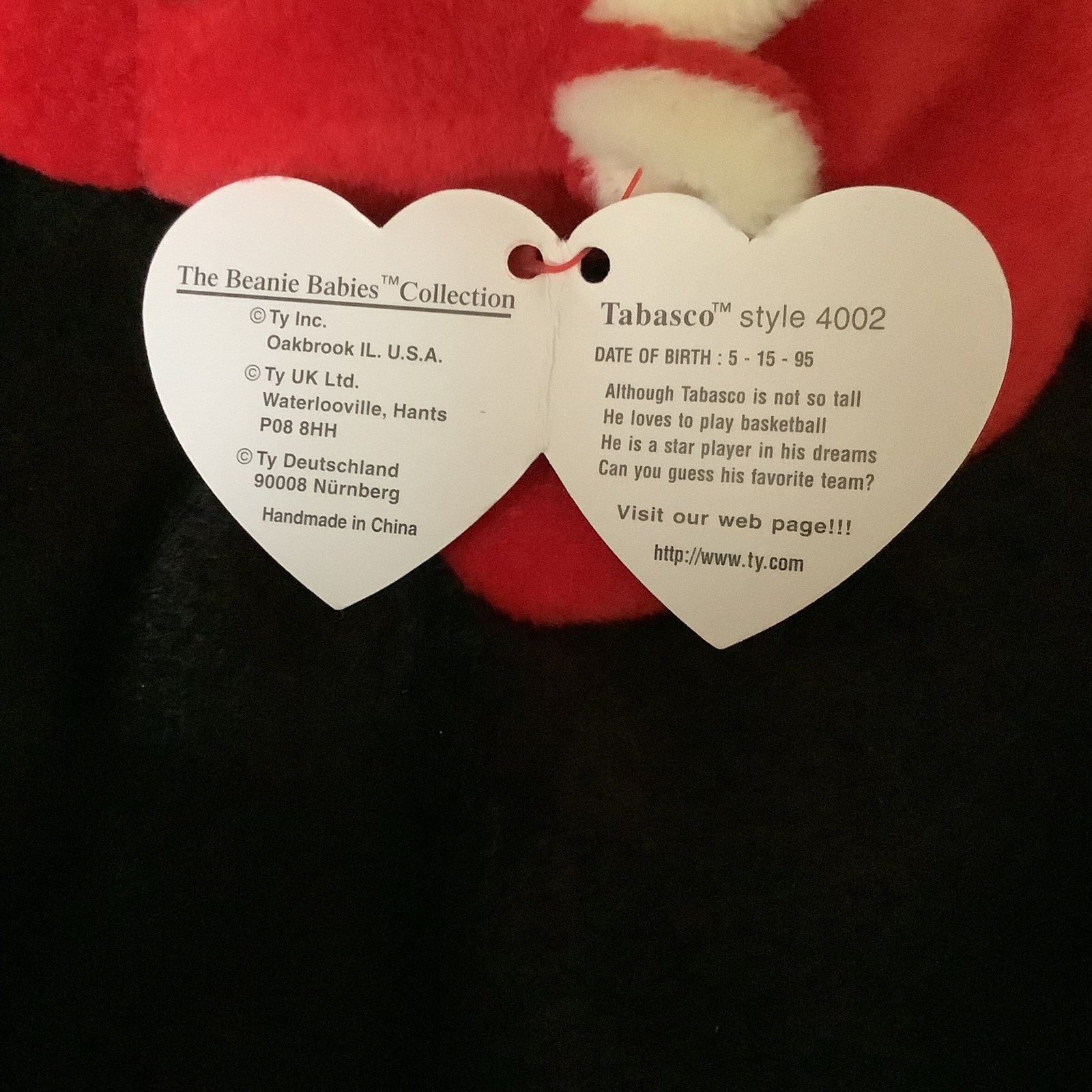 This Fabulous Mint Most Valuable Iconic Original Limited Production Collectorโs Set was stored from the day of purchase was NEVER played with or mishandled. Investment Quality! And to help ensure its INCREASING Future Selling Price this Prized Tabasco comes with both plastic Swing and Tush tag protectors!