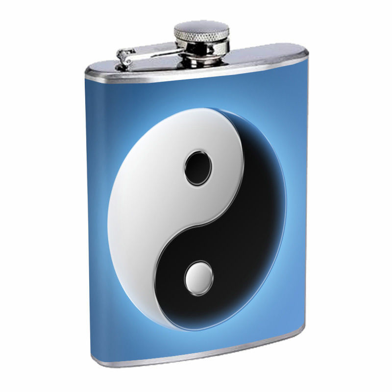 Yin Yang D2 Flask 8oz Stainless Steel Hip Drinking Whiskey Rum Scotch