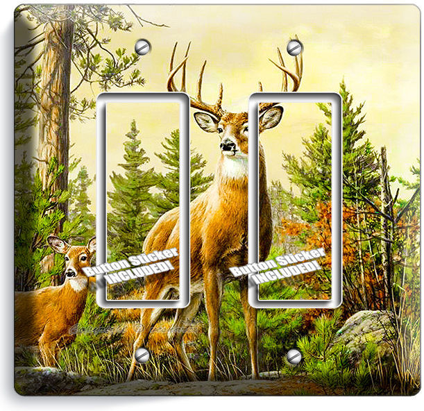 WHITETAIL DEER BUCK ANTLERS DOUBLE GFCI LIGHT SWITCH WALL PLATE COVER HOME DECOR