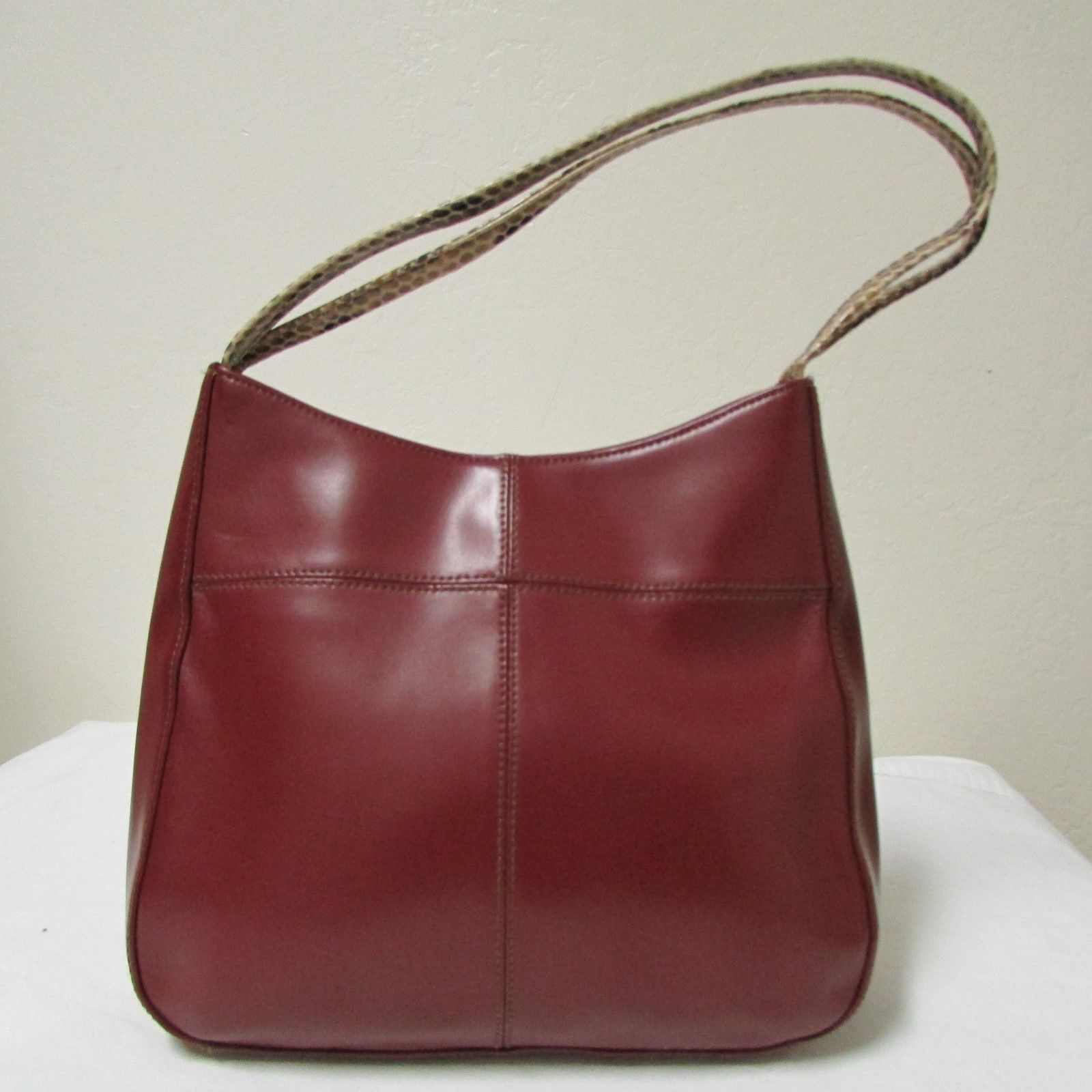 Deep Red Leather Handbag With Double Faux Snakeskin Strap By Hype