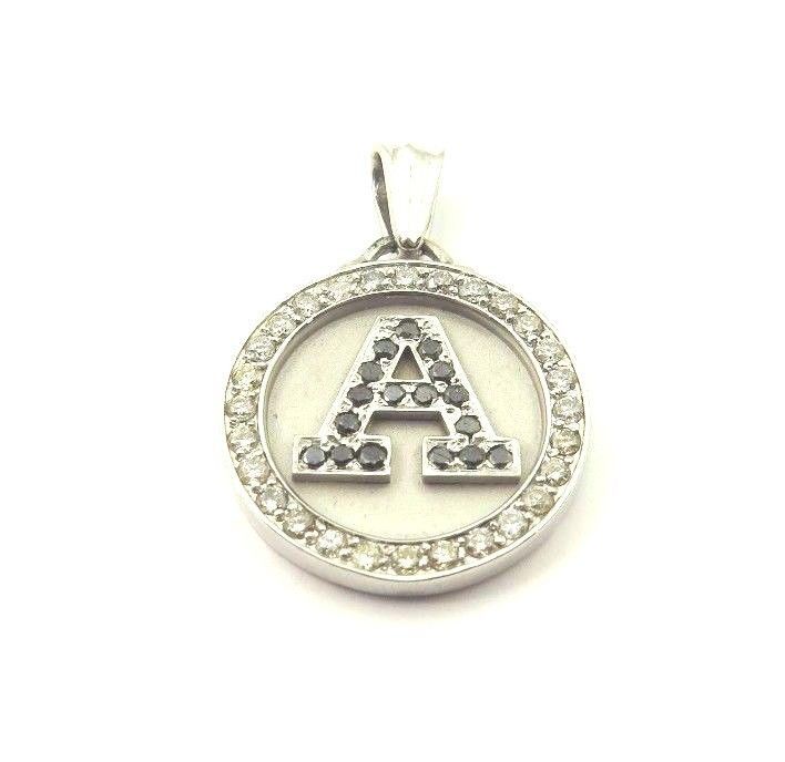 10k White Gold "A" Initial Diamond Pendant 1.00ct With Black Diamonds