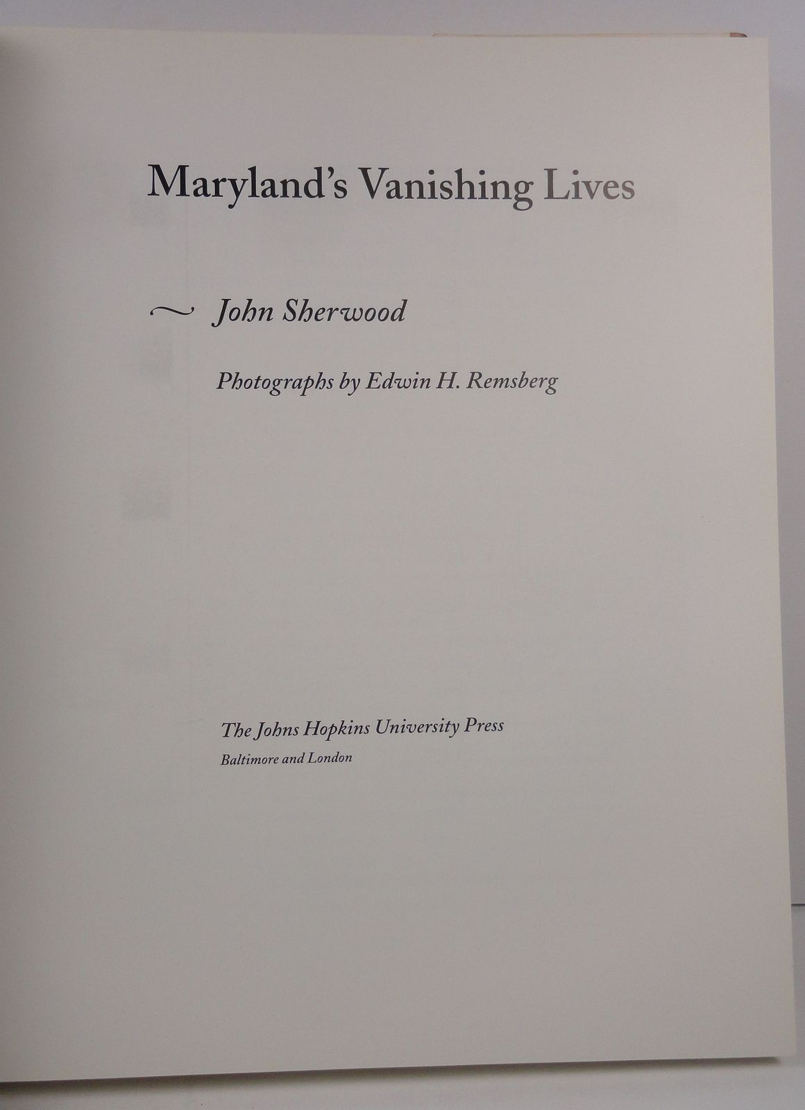 Maryland's Vanishing Lives by John Sherwood and similar items