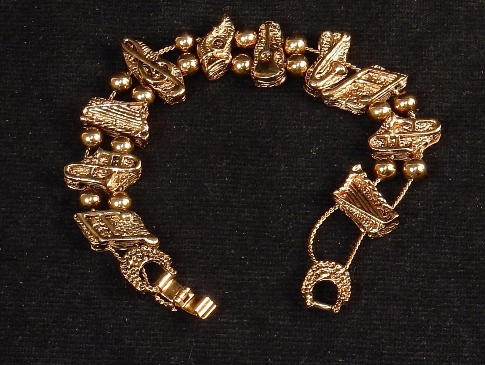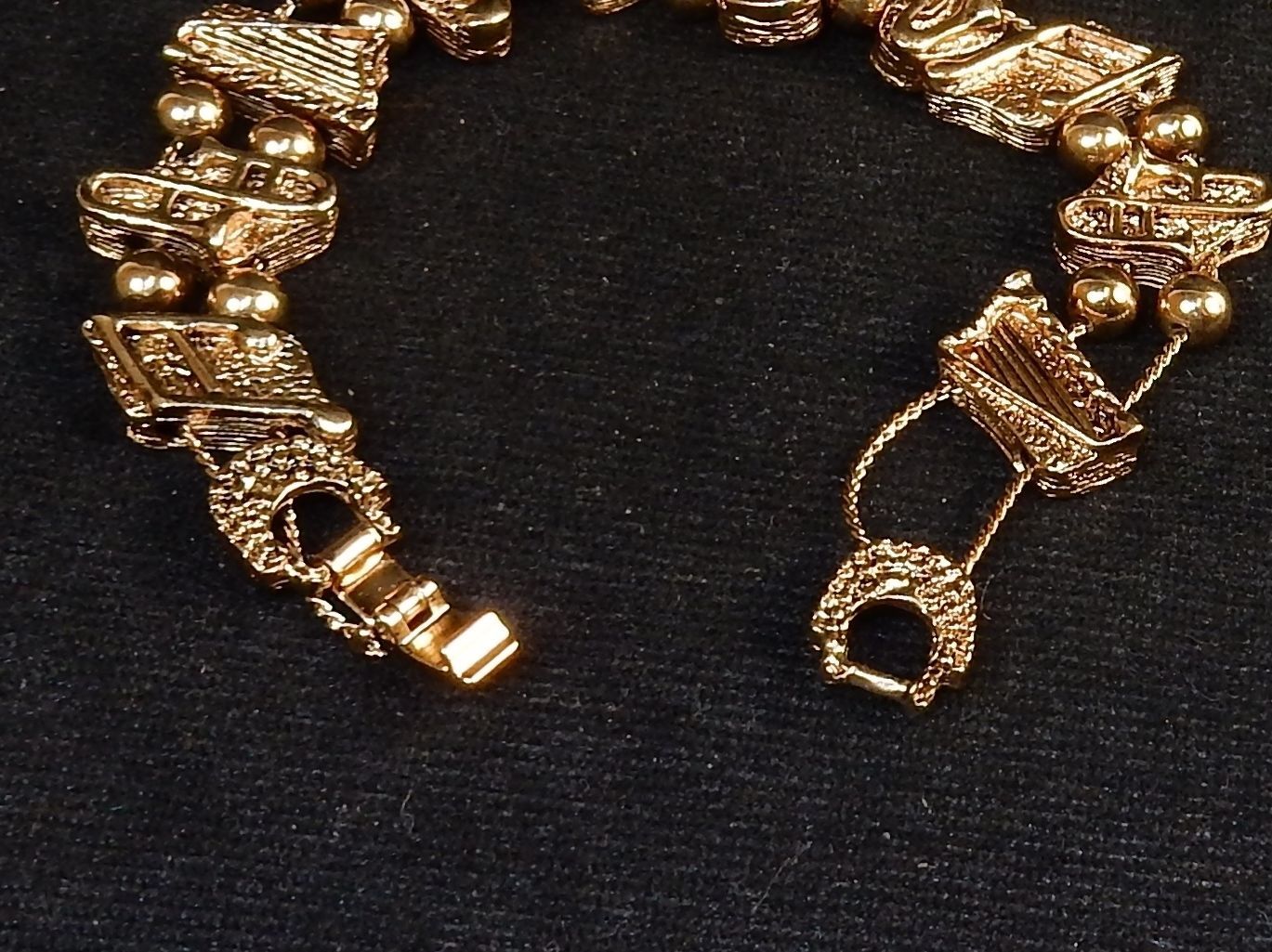 Charm Bracelet, Horns Harps ~ Classic TOFA Slider, 1995 ~ Gold Tone #5430700
