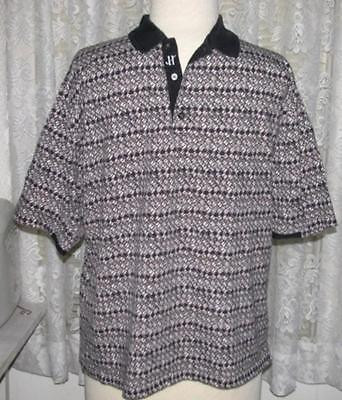 WHITE WINE & TAUPE on BLACK Cotton Soft Knit SHIRT Size XXL Haggar Golf