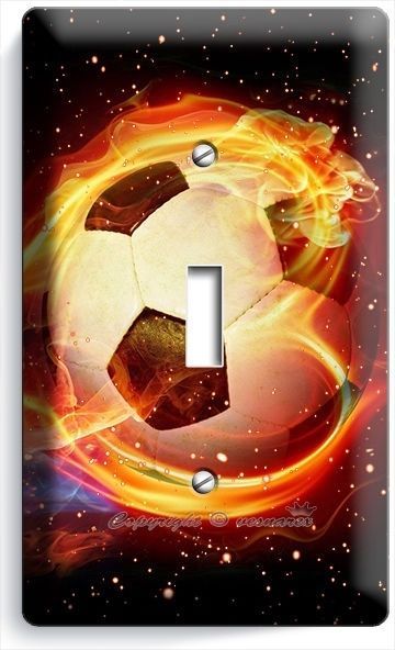 SOCCER BALL FLAME FOOTBALL SINGLE LIGHT SWITCH WALL PLATE COVER BOYS ROOM DECOR