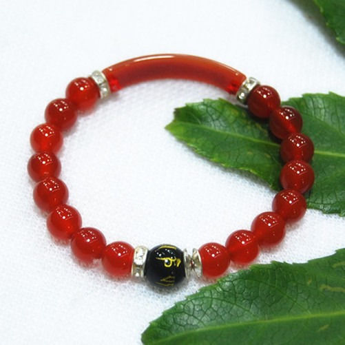 Stretchy Curved Red Agate Gemstone Slip Mantra OM Mani Padme Hum Beaded Amulet