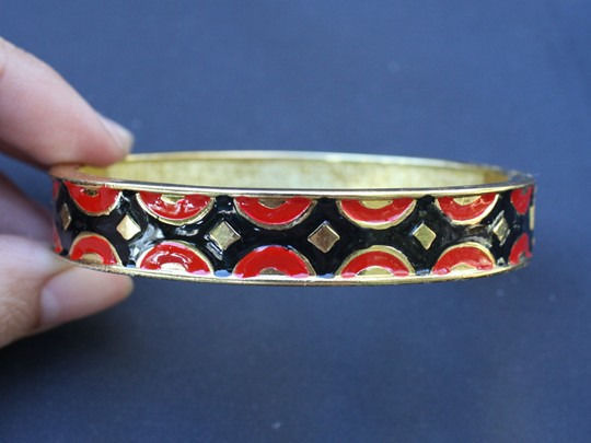 Very Beautiful Oval Glazed Brass Openable Clasp Bangle Bracelet