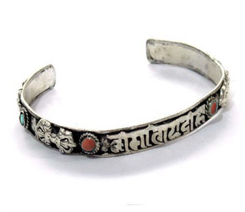 popular Tibetan gemstone amulet cuff bracelet, for protection in all directions and to bring love and spiritual harmony into