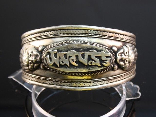 Giant Tibetan Carved Mantra OM Mani Padme Hum 2 Dragon Head Amulet Cuff Bracelet