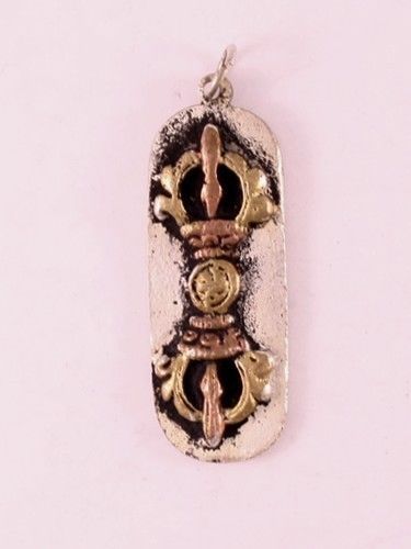 Tibetan 3-color Copper Carved OM Sankha Double Cross Vajra Dorje Amulet Pendant
