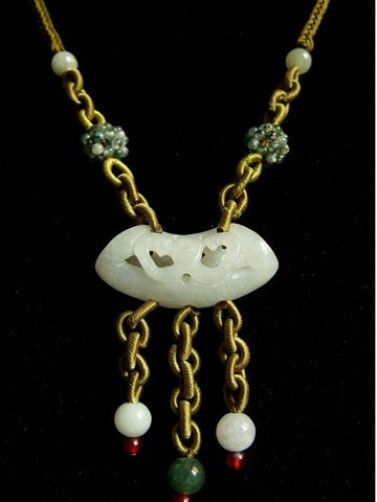 as the two series connections above the center pendant, with two jade beaded ball