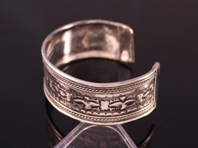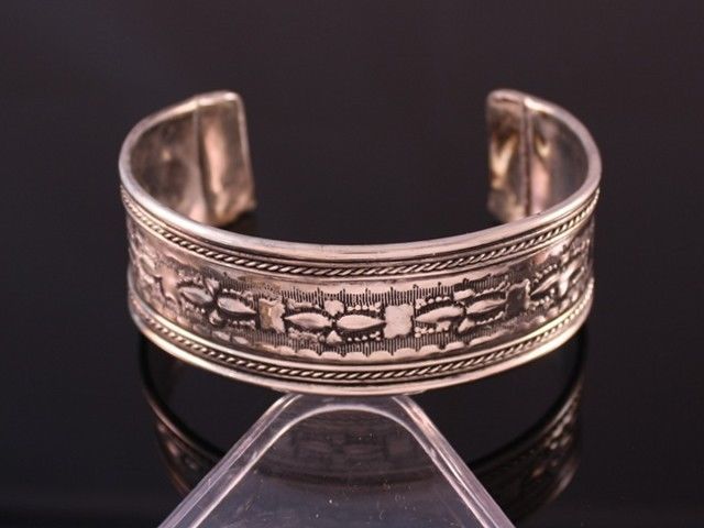 Unique Huge Tibetan Thin Brass Plated 8 Auspicious Pattern Weaving Cuff Bracelet