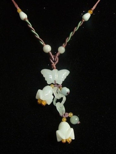 hand-knotted jade butterfly orchid flower necklace with premium silk cords. What