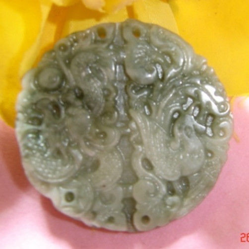 Large Delicately Carved Dragon / Phoenix Green Jade Amulet Pendant