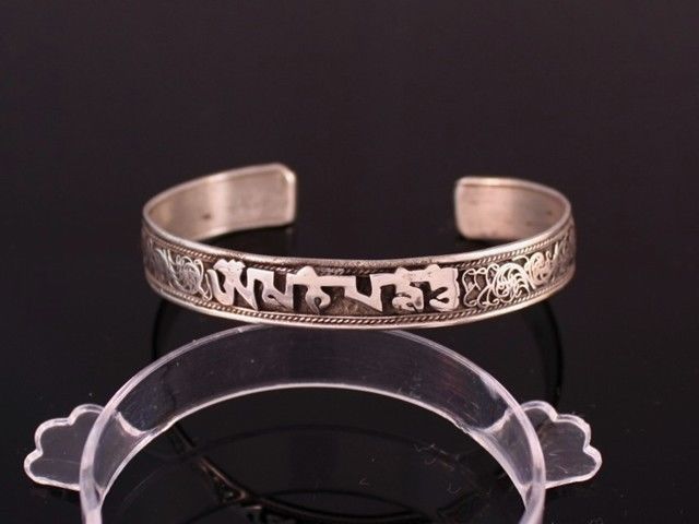 Tibetan Lotus Filigree Carved Mantra OM Mani Padme Hum Amulet Cuff Bracelet
