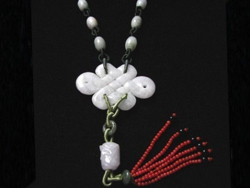 eternal knot as the center pendant, with a jade donut circle and delicately carved