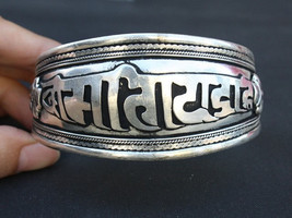 Huge Tibetan Multi-Weaving Carved OM Mani Padme Hum Dorje Amulet Cuff Bracelet