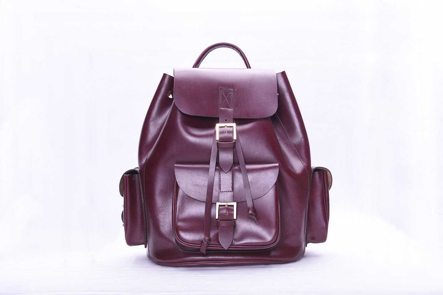 Handmade leather backpack for men.