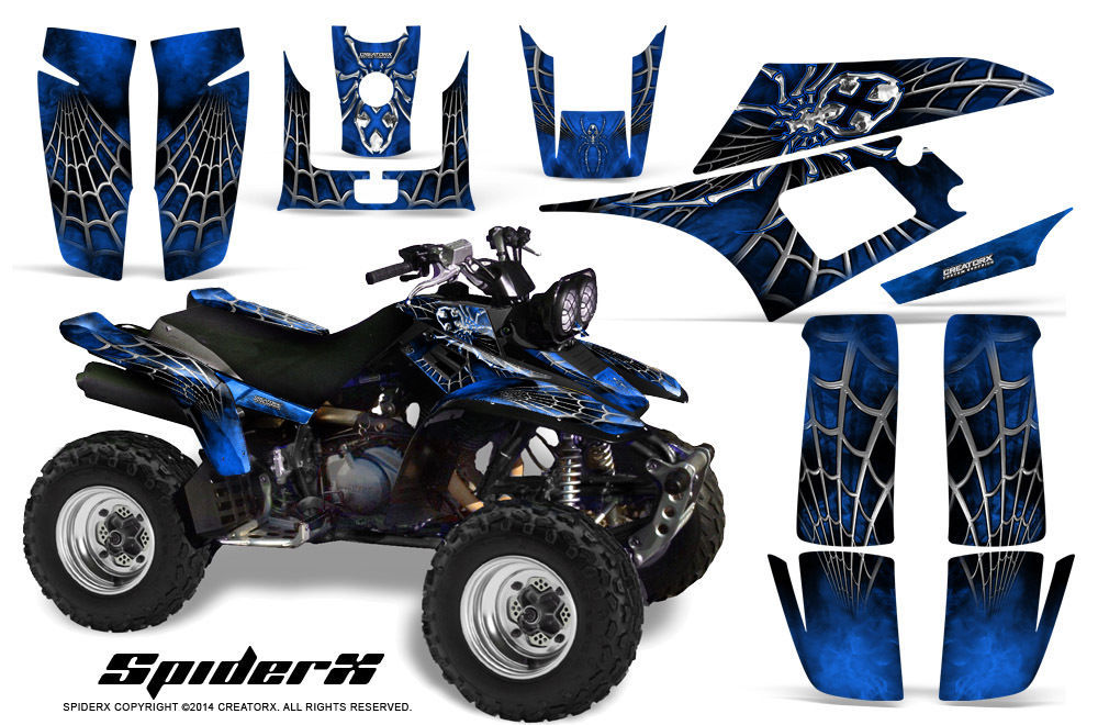 YAMAHA WARRIOR 350 GRAPHICS KIT CREATORX DECALS STICKERS SPIDERX BLUE