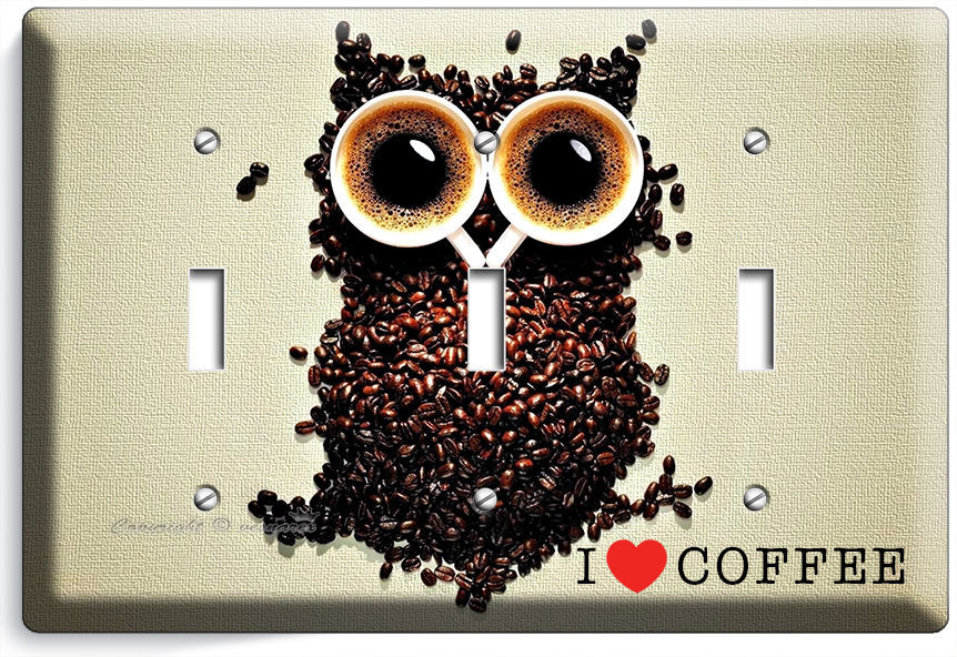 I LOVE HEART COFFEE BEANS OWL TRIPLE LIGHT SWITCH WALL PLATE COVER HOUSE DECOR