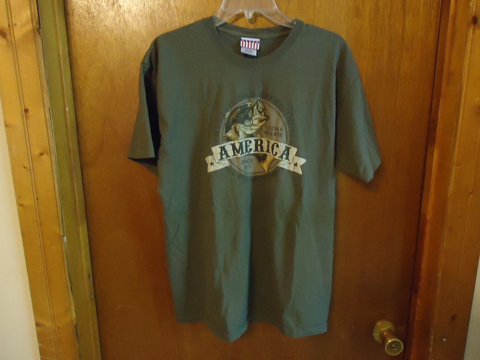 Mens America Size Adult L Bass Fishing Expeditions 100% Cotton T-Shirt " BEAUTIF