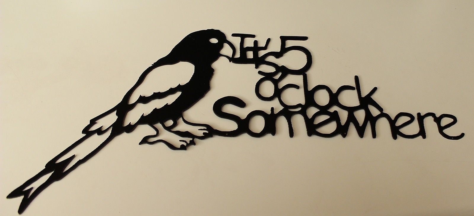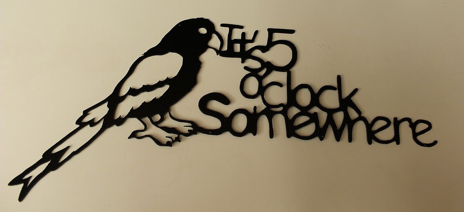 Its 5 O'clock Somewhere Jimmy Buffet Style/Parrot metal wall art/ HGMW