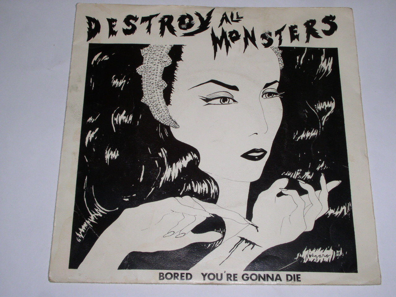 This is a vintage red vinyl, France import 45 rpm phonograph record by Destroy All Monsters, entitled, "Bored". Flipside: "You're Gonna Die". Record label: Cherry Red 3. Comes with the original picture sleeve as shown.